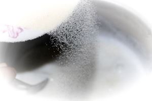 В отдельной небольшой мисочке смешиваем манку, сахар и соль – так риск образования комочков снизится до минимума.