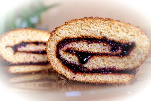 Мягкий и нежный бисквитный рулет с вареньем готов. Осталось подать его к столу с чаем или кофе.
