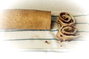 Осторожно сворачиваем рулет. Это делается очень легко. Отрезаем немного по краям, чтобы он выглядел ровным.