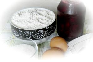 Для приготовления бисквитного рулета с вареньем подготовим продукты по списку.