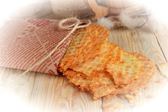 Cырные вафли напоминают крекер или чипсы. Можно менять их вкус, добавляя сушёный чеснок, паприку и травы.
