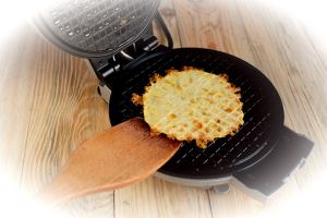 Мягкая солоноватая сырная стружка в вафельном тесте при выпекании подсушивается, истончается, зарумянивается, создавая невообразимо насыщенный и концентрированный вкус.