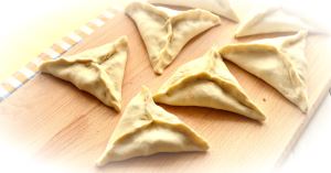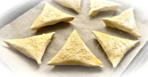Затем каждую самсу присыпьте очищенными семенами белого (или чёрного) кунжута.