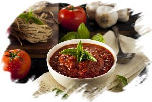 Масло оливковое, чеснок, томаты, томатная паста, сахар, соль, зелень базилика, сушёный орегано, чёрный молотый перец, красный острый перец.