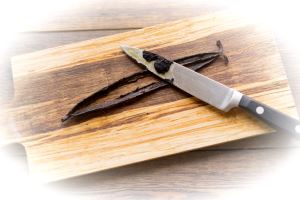 Разрежьте стручок ванили вдоль на две части. Стручок у вас должен быть мягким и влажным. Если у вас в руках твёрдая палочка, выбросите её.