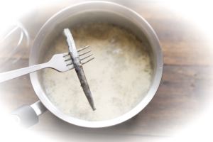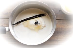 Как только вы увидите признаки закипания, снимите ёмкость с огня и удалите ванильный стручок. Если для ароматизации использовались другие ингредиенты, например, сухой травяной сбор лаванды или ромашки, смесь следует процедить через сито.