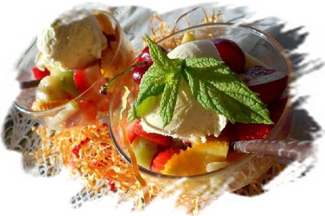 Лёгкий и быстрый в приготовлении десерт. Готовится из сезонных фруктов и ванильного мороженого.