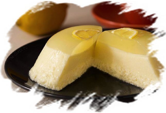 Внизу десерта находится слой воздушных взбитых белков, похожий на лёгкую сладковатую пену, которая тает во рту. Самый большой средний слой представляет собой нежное и упругое сливочное суфле с тонким лимонным вкусом. И венчает это десертное блюдо кисловатое и аппетитно подрагивающее желе из лимонного сока.
