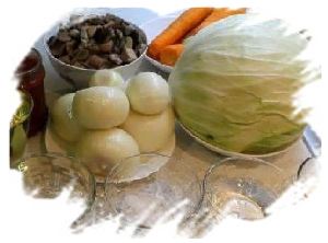 Для приготовления солянки из капусты с грибами следует подготовить продукты по списку.