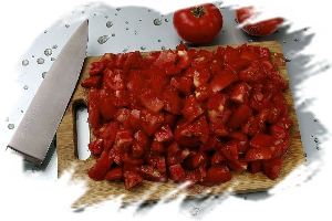 В идеале кожицу у помидоров надо предварительно удалить. Однако, при использовании сортов томатов с мягкой кожицей можно обойтись без этой процедуры. Если вы решите удалять кожуру, то для удобства помидоры надо сначала надрезать крест-накрест, а затем обдать кипятком.