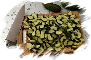 У огурцов срезать кончики и нарезать их полукольцами толщиной 5–7 мм.