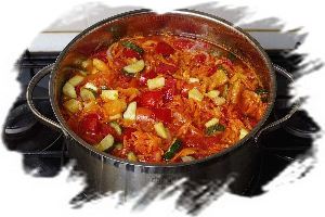 Все ингредиенты тщательно перемешать, на среднем огне довести до кипения и готовить 15 минут при небольшом кипении.