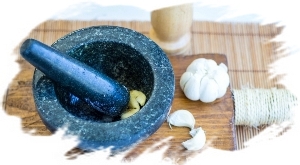 Зубчики чеснока очистите и разотрите с 1-2 щепотками крупной соли до состояния пасты.