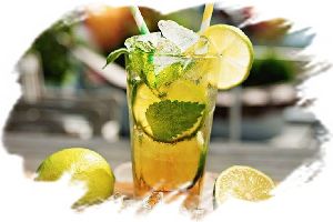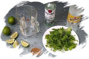 Для того чтобы приготовить «Мохито», нам понадобятся охлаждённые ром и тоник, лаймы, листочки свежей мяты, коричневый сахар, а также лёд в кубиках.