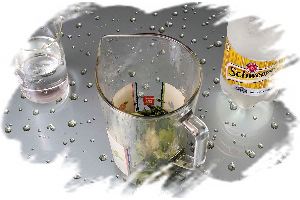 Разливать коктейль в стаканы следует через мелкое сито, чтобы в них не попала зелень.