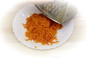Заранее сваренные, охлаждённые и очищенные овощи измельчите с помощью тёрки. То же самое проделайте и с отварными яйцами.