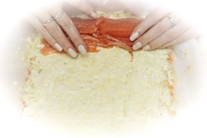 Начиная с рыбного края аккуратно сверните салат в рулет.