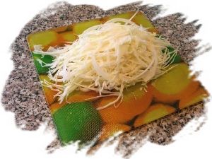Чем мельче вы нарежете капусту, тем больше сока она даст. Если же у вас получилась достаточно большая стружка, то капусту следует слегка перетереть руками, чтобы она пустила сок.