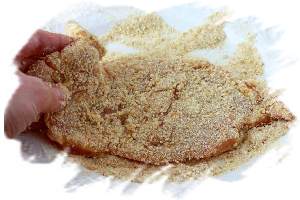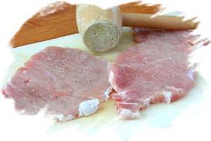 Приготовление шницеля отличается от приготовления отбивной тем, что мясо выбирают особенно тщательно, исключая хрящики и даже небольшие прожилки, и перед жаркой панируют в сухарях.
