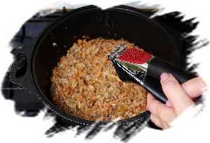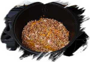 Если жидкость в процессе приготовления будет выкипать, то необходимо понемногу подливать в казан горячую воду из чайника.