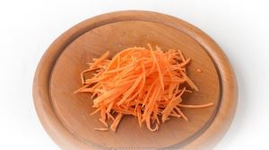 Морковь (70 г) очистить и натереть на тёрке.