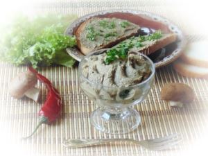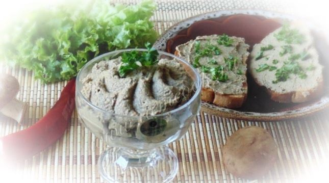 За счёт добавления грибов вы получите яркий вкус и аромат, а куриная печень в сочетании с маслом дарит очень бархатистую, обволакивающую структуру готового паштета.