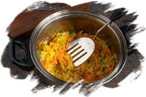Обжариваем овощи примерно 15 минут, пока они не станут мягкими.