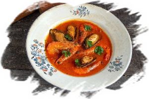 Как правило, крем-суп с морепродуктами получается низкокалорийным и лёгким.
