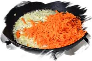 Теперь добавим в нему морковь и потушим вместе минуты три.