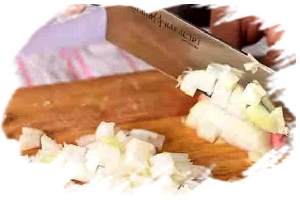 Луковицу очищаем, разрезаем пополам и затем рубим мелко ножом.