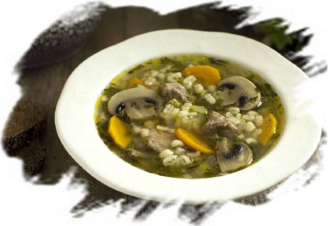 Благодаря наличию большого количества перловки, грибов и овощей суп получается густым, питательным и очень сытным.