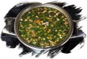 В готовый суп можно положить немного рубленой свежей петрушки или другой зелени на ваш вкус, закрыть его крышкой и дать настояться 15 минут.