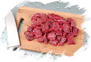 Мякоть говядины тщательно промыть и нарезать небольшими кубиками.