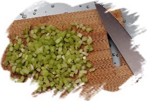 Очищенный сельдерей нарезать небольшими кубиками.