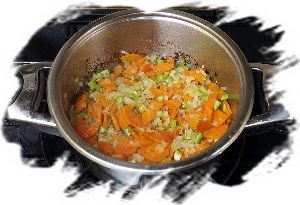 В большой суповой кастрюле разогреть 2 ст.л. растительного масла (по возможности, оливкового).