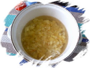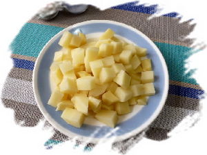 В кастрюлю положить нарезанный картофель и обжаренный лук. Залить небольшим количеством кипящей воды так, чтобы она их едва прикрывала.